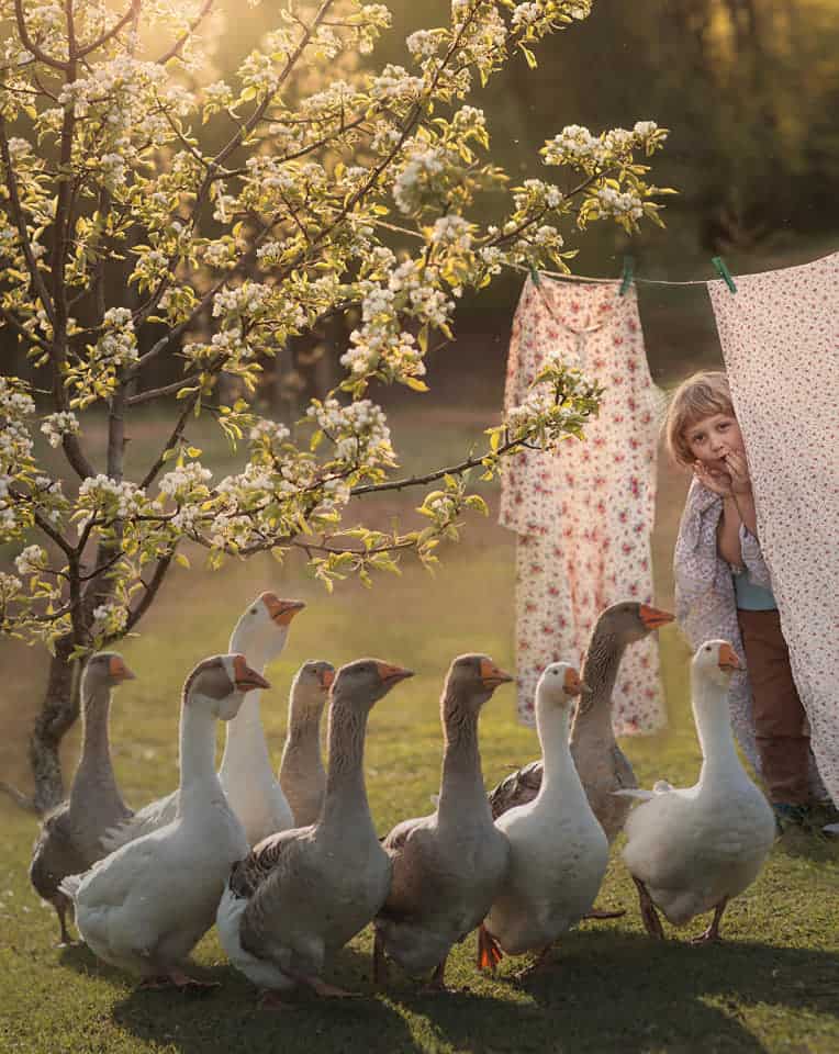 W podgrupie bajka plasują się zdjęcia, które bardzo doceniam, a to dlatego, że ja nie umiem takich zrobić. I wcale nie jest to sarkazm, ja naprawdę lubię popatrzeć na taką fotografię. Doceniam kunszt aranżacji, stylizacji i warsztat techniczny przy obróbce takich zdjęć. To wcale nie jest taki proste. Gdy dodamy do tego umiejętność łączenia światła zastanego z błyskowym w takich proporcjach, aby nie było to nachalne walenie po oczach i separacja niedoświetlonego tła jedynie, to uzyskujemy takie rezultaty jak odkryta dzisiaj przeze mnie Elena Shumilova. Bajkowa fotografia w najlepszym jakościowym wydaniu. Sama autorka jest uznaną fotografką prowadzącą warsztaty na całym świecie właśnie z tego typu fotografii. Polecam Wam jej stronę i filmy z warsztatów. Jest czego się uczyć. Zdarzają się wśród tych kadrów, takie pomysły, które nie do końca mi pasują i zaczynają ocierać się o estetykę, która nie jest mi najbliższa, ale warsztat ratuje sytuację. Jestem w stanie zaakceptować taki styl, bo jest to doskonała jakość.