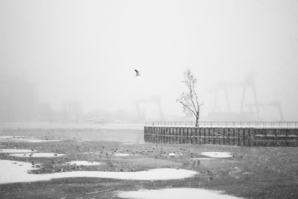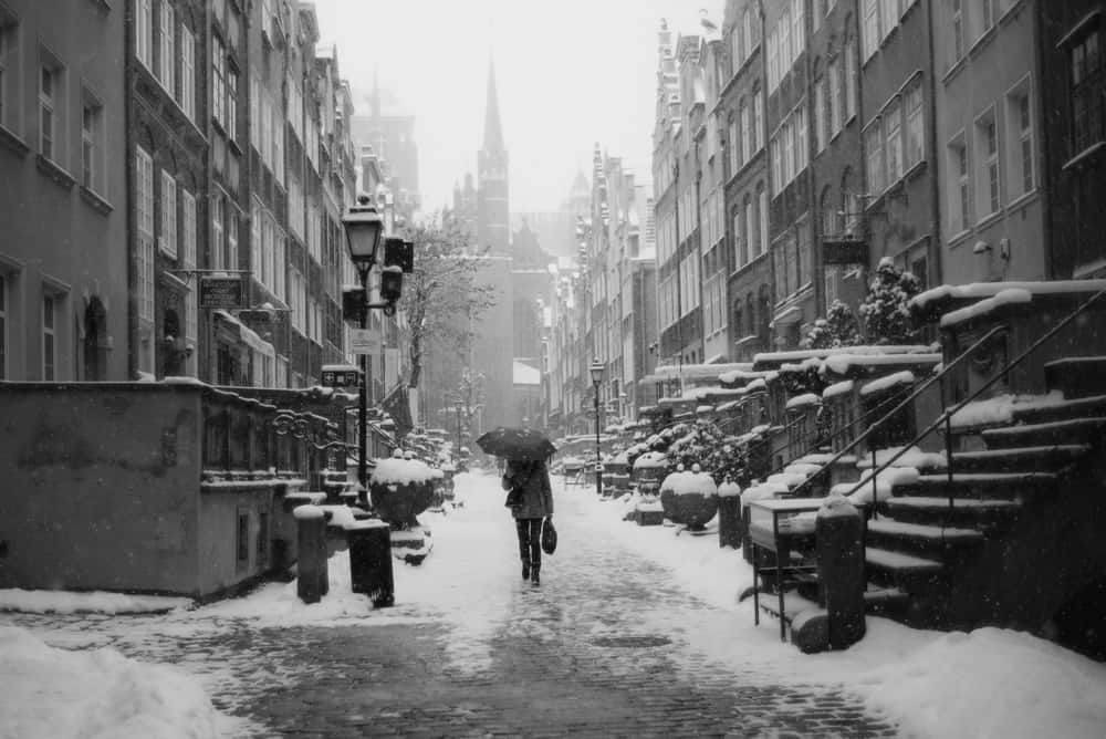 Burze śnieżne raz po raz przetaczały się nad miastem i widoczność spadała do kilkudziesięciu metrów. Dojmujące zimno wciskało się pod wizjer, a zgrabiałe palce z trudem trafiały w pierścień przysłony.